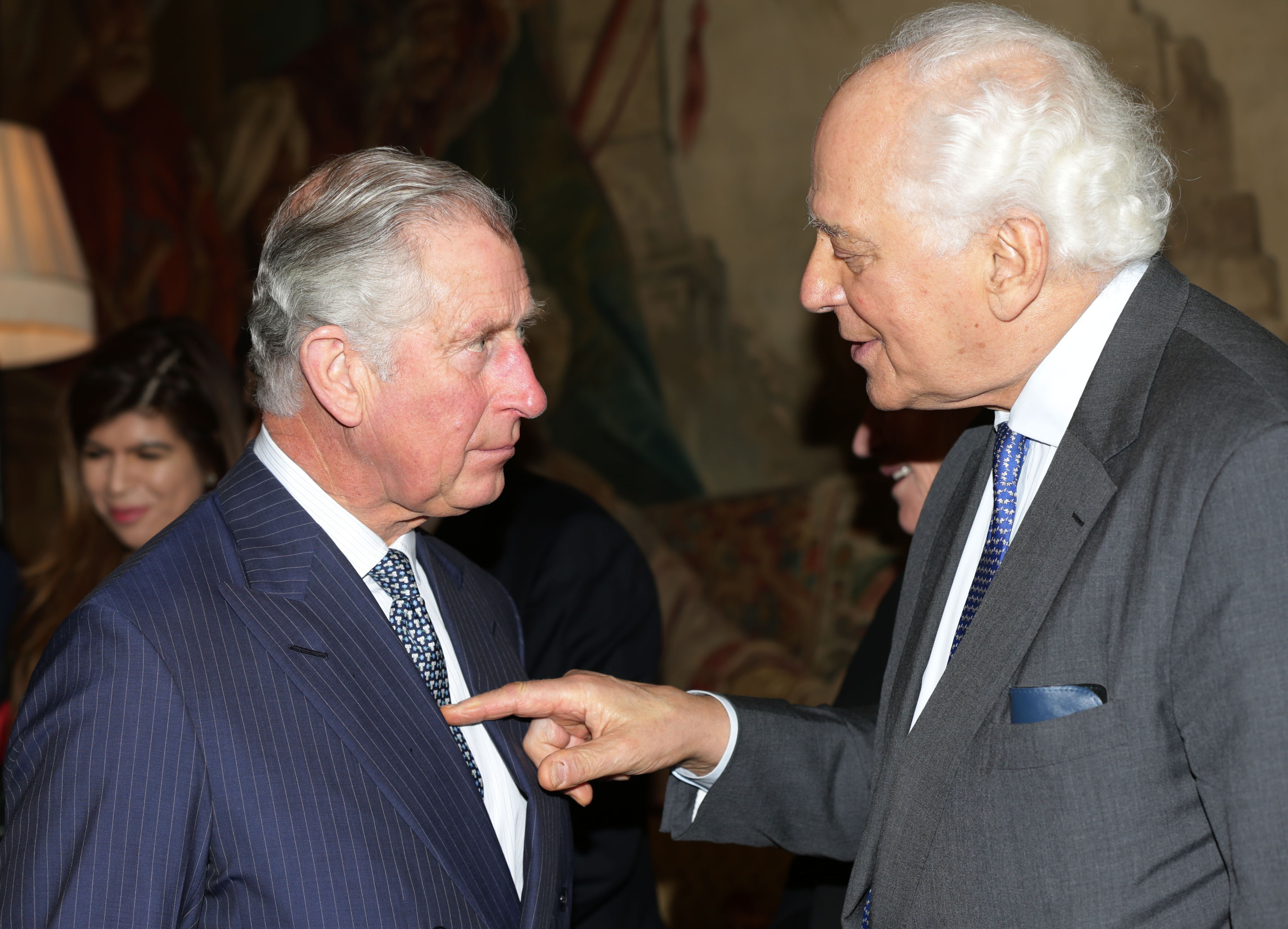 For years you told me that this photo showed Rothschild treating Prince Charles like a lackey.But seeing this pic in HD for the first time, Rothschild is obviously pointing at the elephant print on Charles' tie.He also has an elephant print tie and it's related to the event, some kind of animal bullshit charity, the Elephant Family Animal Ball.