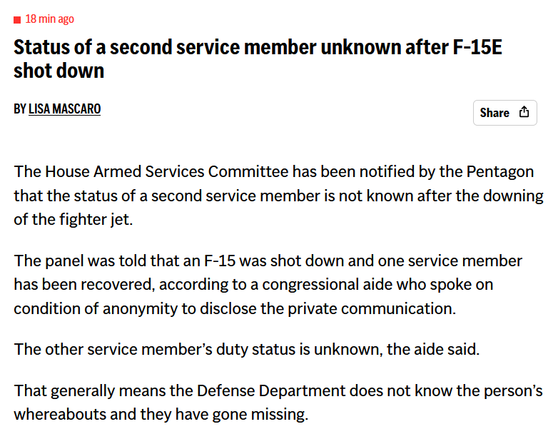 Zoggy getting fucked in an IRGC rape dungeon by Big Shiite Cockhttps://apnews.com/live/iran-war-israel-trump-04-03-2026#0000019d-54e4-d025-a59d-5cfc0a6e0000>The House Armed Services Committee has been notified by the Pentagon that the status of a second service member is not known after the downing of the fighter jet.>The panel was told that an F-15 was shot down and one service member has been recovered, according to a congressional aide who spoke on condition of anonymity to disclose the private communication.>The other service member’s duty status is unknown, the aide said.>That generally means the Defense Department does not know the person’s whereabouts and they have gone missing.