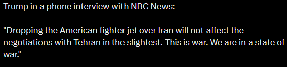 >>532309899Reminder:>A single F-15E was shot down >No other plane was shot down today, just an A-10 suffering superficial damage>A black hawk helicopter was fired at by random villagers with WW1 era rifles but suffered no damage>Everything else is being made up on the spot and parroted by propagandists and delusional shills.The fake black hawk downing is especially funny because it started as a joke here this morning and then morphed into twitter propaganda as soon as the shills picked up on it.