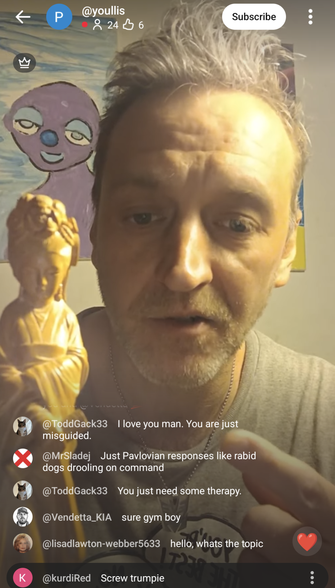 >individuals with multiple pictures of trump covered in cum want to tell you about economics, war, and politics deranged