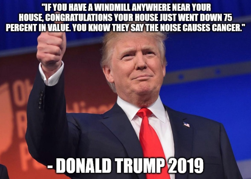 he either believes the sound from windmills cause cancer, or, he thinks you, the voter, are dumb enough to believe that the sound from windmills cause cancerthe soundfrom windmillscausing cancer