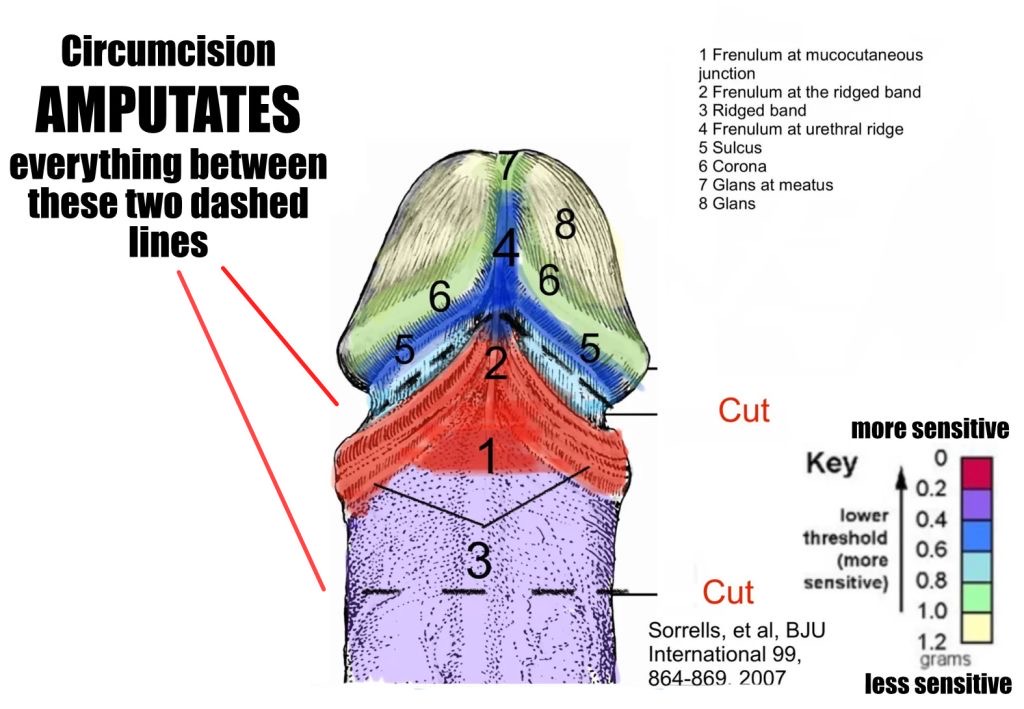 >>532338540every circumcision removes at least some of the frenulum, and the entire frenula delta, but there are some sadist doctors who "clean it up" by gouging out the rest. every circumcision is a deliberate botch job