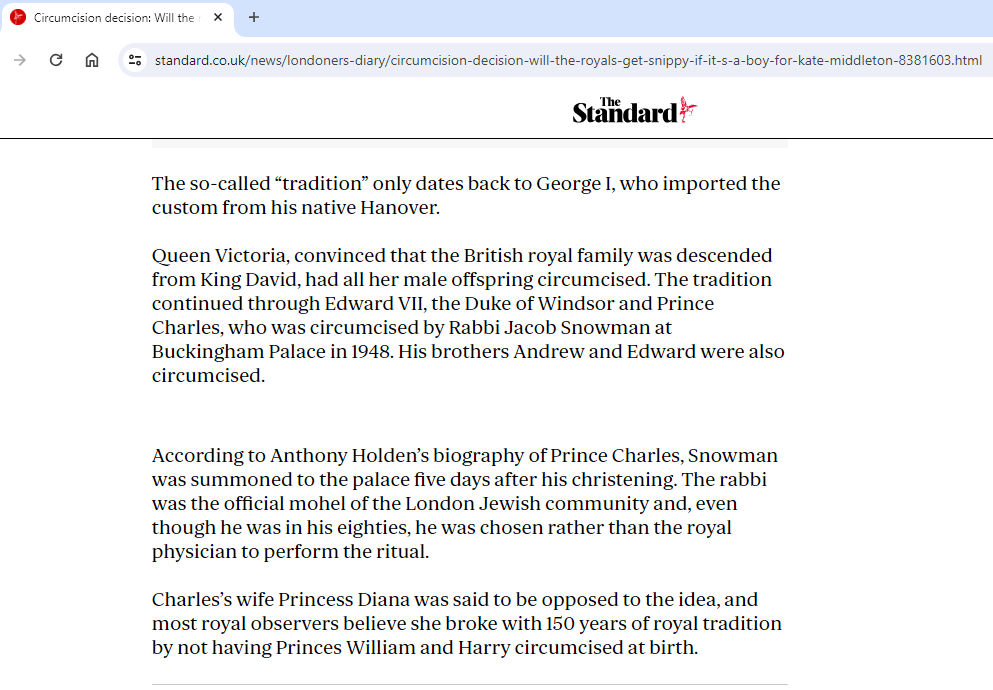>>532323693if you are a princess you might get murdered iif you dont allow jews to ritually mutilate your baby boys' genitals