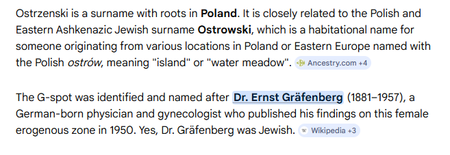 >>532336066>>532335030>>532329381>>532324700>>532324475Nope, no such thing as a g-spot. Women's equivalent for a penis is the clitoris, the surface of which is only a part of it yet the most sensitive part, same as a man's. If people itt are so confident such a thing exists then provide proof for it, not feelings. Name which structure is supposed to be the g-spot, you can't though, because unlike the clitoris the only proof of it's existence are unreliable accounts of a woman's experience, it's literally pop-sci myth pushed by tabloids. Btw the person who came up with the g-spot was literally a jew.>The vagina has no anatomical structure that cancause an orgasm (and the vaginal–cervical genitosensory component of the vagus nerve is a hypothesiswithout scientific basis)>Female orgasm is possible in all women, alwayswith effective stimulation of the female erectileorgans, e.g. the female penis, during masturbation,cunnilingus, partner masturbation, and also duringvaginal/anal intercourse simply by stimulating the clitoris with a finger (Puppo, 2011a, 2013a).>As with “male orgasm,” “female orgasm” is the correct term. G-spot/vaginal/clitoral orgasm, vaginallyactivated orgasm, clitorally activated orgasm, clitoralor clitoris-urethra-vaginal complex, clitoral vagina,clitoral urethra, clitoral bulbs, clitoral raphe, internalclitoris, are without scientific basis and they notaccepted by experts in human anatomy. Findings fromthe disciplines of embryology, anatomy, and physiology about the congestive structures of the vulva,which are homologous to men’s erectile organs, mustform the basis of the biological discourses about thefemale orgasm.Puppo, V. and Puppo, G. (2015), Anatomy of sex: Revision of the new anatomical terms used for the clitoris and the female orgasm by sexologists. Clin. Anat., 28: 293-304.>>532335176Female orgasm exists just not vaginally, women orgasm from the clitoris, the female "penis".