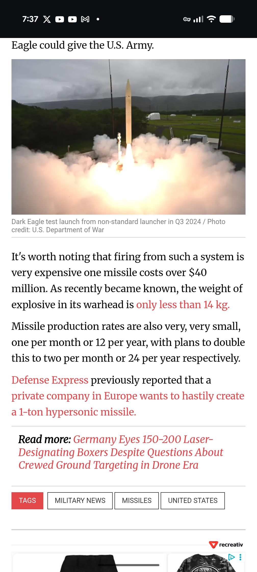 >>532327168Kek that's nothing anon they have been testing the new dark eagle hypersonics... Those are $40million a pop. Imagine you and 79 of the people you know spend your entire life's work so some military science fag can go boop... A fuck it didn't work get another one. Oh and they deliver a 14kg payload. An Iranian fattah-1 hypersonic costs less than 200k and delivers up to 450 kg. And they actually use them. Not just in testing. The American military is literally a scam and their people are slaves to Jewish generals they have no control over.