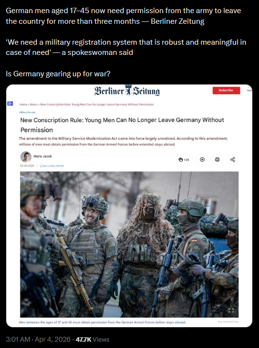 >>532328400everyone's been watching Ukraine closely. Fighting age males are going to have massive restrictions to their personal freedoms over the next couple years.