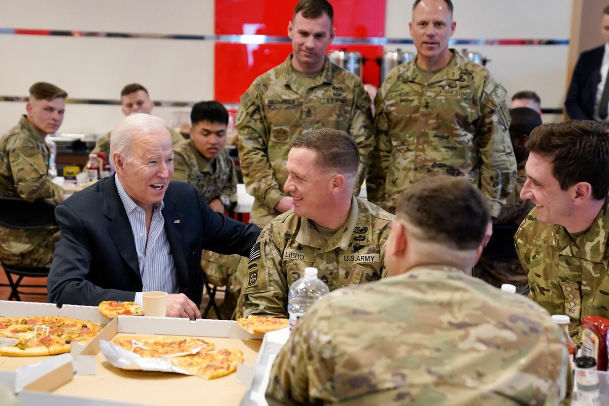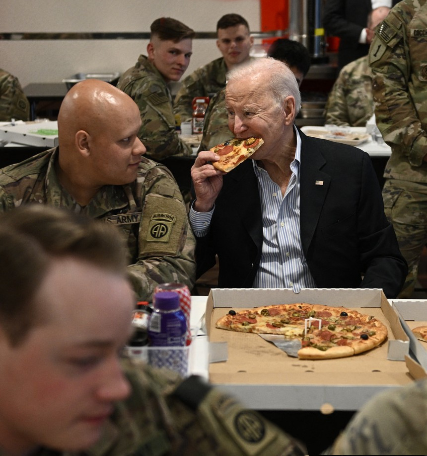 >>532335646Its so cool that all of those troops get to eat pizza togethe- wait why is there only the one pizza why is no one else holding pizza why is there no other food from any angle >>532335992 was every single soldier just ordered to sit down in a cafeteria with no food and watch as biden eats not one but two entire pizzas on his own