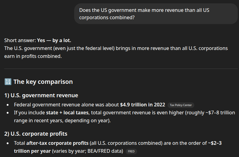 >>532336511>govt having more money than corporations and billionaires oh yeah, so thats why politicians are constantly bought out and lobbied by corporationsmakes sense