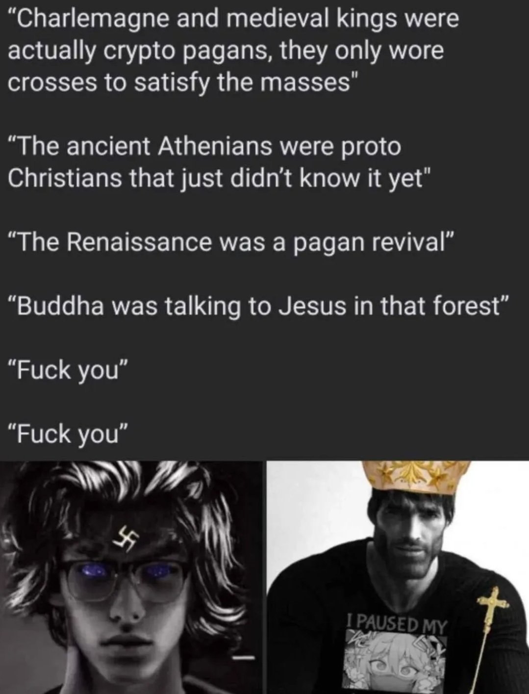 >>532342833Not a bad meme Anon, Pagans have their share of Jews, but fuck "good Christians" entirely