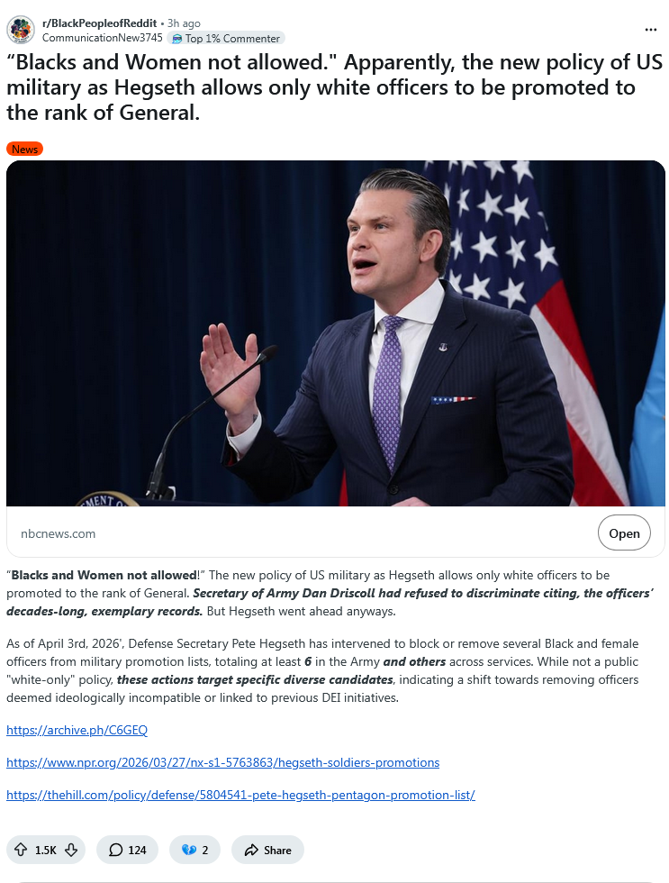 >>532339037100% of boomer fetishization of our military supremacy is based on time periods and conflicts where the military was generally 90%+ white. Early GWOT was generally 75% white. The military we have now is 60% or less except elite units which is and are necessarily always 90% white. The current demographics mean our military, generally, has never been weaker