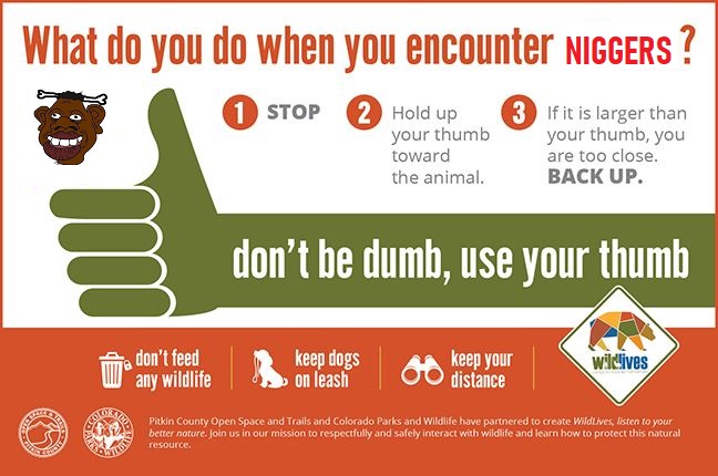 >>532339252This is why I don’t live around niggers. You can’t live around them and you’re not allowed to kill them. So that leaves one option. DONT LIVE AROUND NIGGERS.