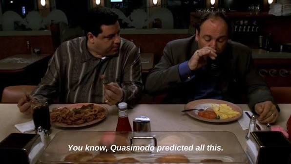 >>532342138They had a conversation earlier in the show, it was a callback to that. It went something like "Paulie what do you think it's like being whacked? Do you think you're just there and then BAM, you fade to black" and then they did that for the end of the show because Tony got whacked.