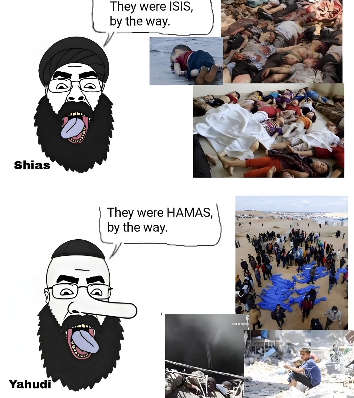 >>532346166the top pic isn't done by shias tho the drowned baby tried to cross the sea with his family to europe and failed, and the other two images are from syria