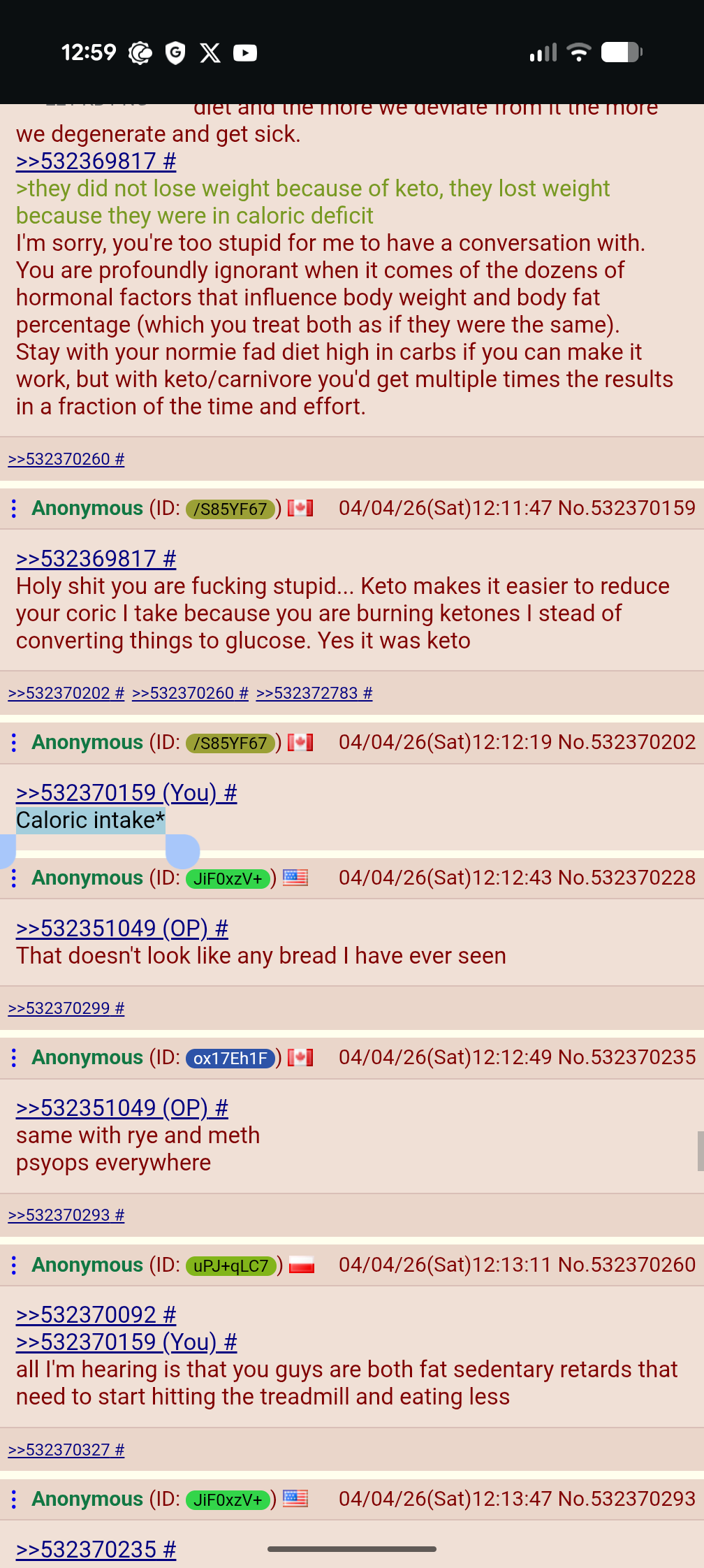 >>532351049I think carbs are fine but I can't digest starch or sucrose. Poor digestion of starch isn't that uncommon and is being linked to a lot of health issues. It doesn't mean carbs are bad but we still don't understand as much as we think.