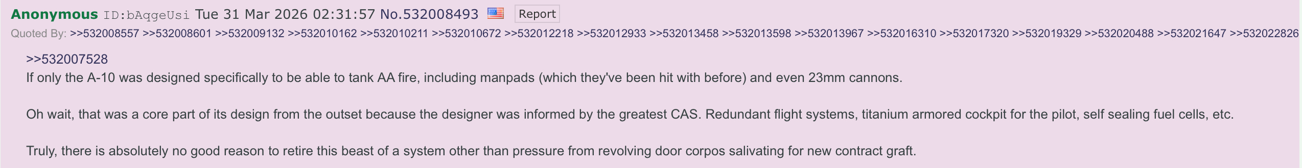 >>532352734>Muh 30mm depleted uranium bulletsThe fan club of this plane is reddit