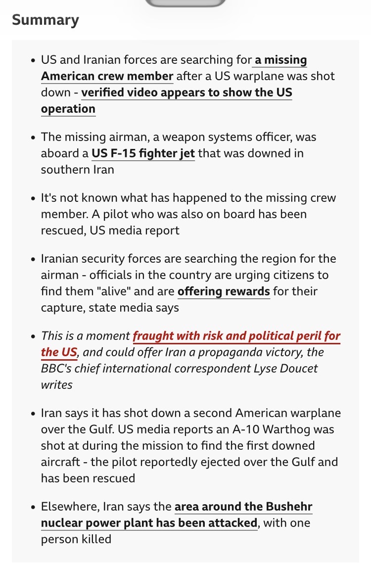 BBC saying the pilot was rescued it’s the weapon systems officer that is missing