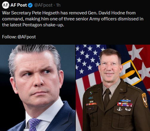 >Hegseth is purging US generals, 14 generals fired so far