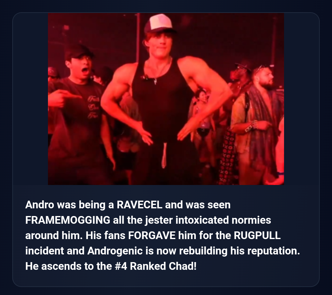 I didnt think it was possible after the wig calamity but Androgenic is back on his redemption arc. Just goes to show how dynamic the looksmaxxing scene is.Always keep aurafarming and everything will turn out well in the end.