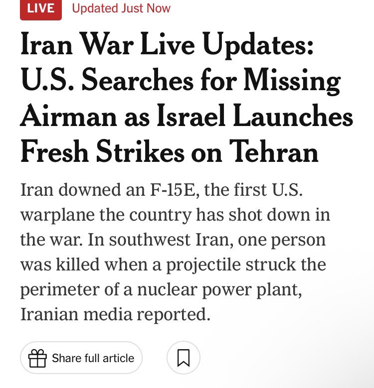 >>532359244▶Pilot Easter egg hunt:>The other nigga's still missing (might be dead failed to eject).▶RECENT:>Second American A-10 shot down over Kuwait>It has emerged that IDF troops fled in disarray after a Hezbollah counterattack on March 28, leaving behind their heavy equipment, according to Israeli Channel 12>Lebanese officials confirm over 1.2 million people have been displaced as a result of Israeli aggression▶Day 35:>Missile impacts on Tel-Aviv and Southern Israel>Unconfirmed reports of another F-16 being downed>Multiple SQU-ACK 7700 alerts of stratotankers>An A-10 Warthog down>IRGC threatens to bomb the Stargate AI data center in Abu Dhabi>An American F-16 allegedly has been hit by Iranian AD over Iraq>US and Iran militaries competing on an Easter egg hunt to rescue or capture the downed US air force pilots>American F-15 shot down over Iran>Possible aerial interception and downing of American helicopter pilot by Iranian forces>French ship successfully crosses strait of hormuz>Hegseth is purging US generals, 14 generals fired so far>Habshan gas facilities in Abu Dhabi have temporarily suspended operations>Iran has struck a Kuwaiti power and desalination plant, causing damage, according to the Kuwait Ministry of Electricity>IRGC’s 15 Khordad garrison in Isfahan’s Baharestan area was targeted with missiles again in the early morning▶Oilhttps://oilprice.com/oil-price-charts/>WTI $111>BRENT $109>DUBAI $128>Do not trust any "happenings" without link/proof▶Kinohttps://files.catbox.moe/segz4e.mp4▶Live-streams:https://www.youtube.com/watch?v=4E-iFtUM2kk https://www.youtube.com/watch?v=O13ynBspdus▶Telegram channelshttps://rentry.org/tgnews▶Israel Rocket Alertshttps://www.tzevaadom.co.il/en/▶Air Traffichttps://www.flightradar24.com/https://flightaware.com/livehttps://globe.adsbexchange.com▶Maritime Traffichttps://www.marinetraffic.com/https://www.vesselfinder.com/▶Bread:https://rentry.org/PIGOP