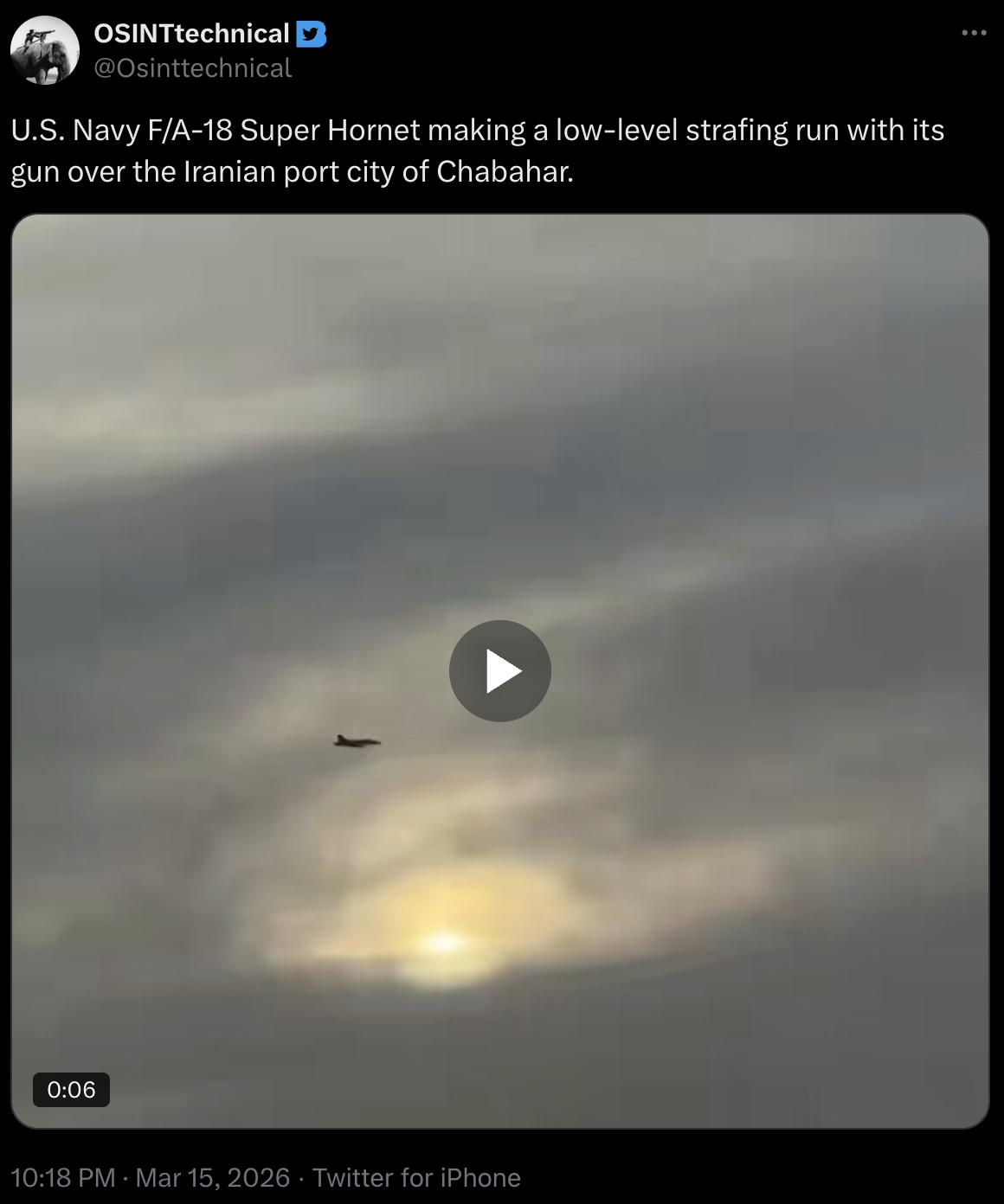 >>532364251we have videos https://x.com/Osinttechnical/status/2033291786043461672and pentagon started to talk about hitting dynamic targets.https://www.war.gov/News/Transcripts/Transcript/Article/4448743/secretary-of-war-pete-hegseth-and-chairman-of-the-joint-chiefs-air-force-gen-da/>A dynamic strike is a strike where a pilot leaves, and during their flight, they get a new target set based on real-time intel given to them. A new launcher, a new location, a new troop formation. A dynamic target is one that changes while you're in the air because of improved intelligence. Two hundred dynamic strikes alone in addition to the pre-planned targets.