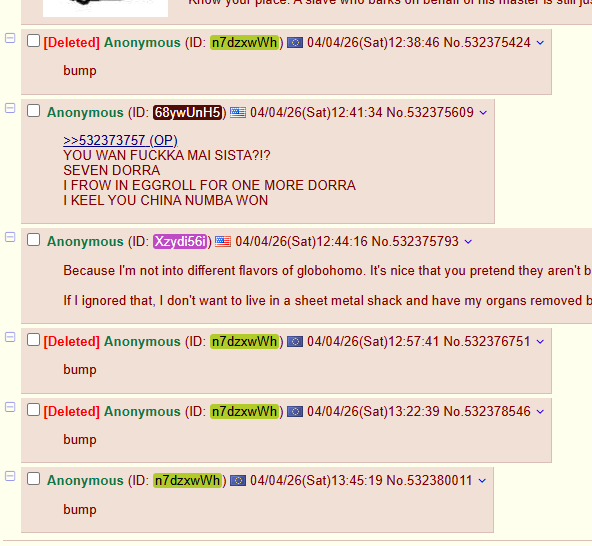 >>532373757YOU WAN FUCKKA MAI SISTA?!? SEVEN DORRAI FROW IN EGGROLL FOR ONE MORE DORRAI KEEL YOU CHINA NUMBA WON