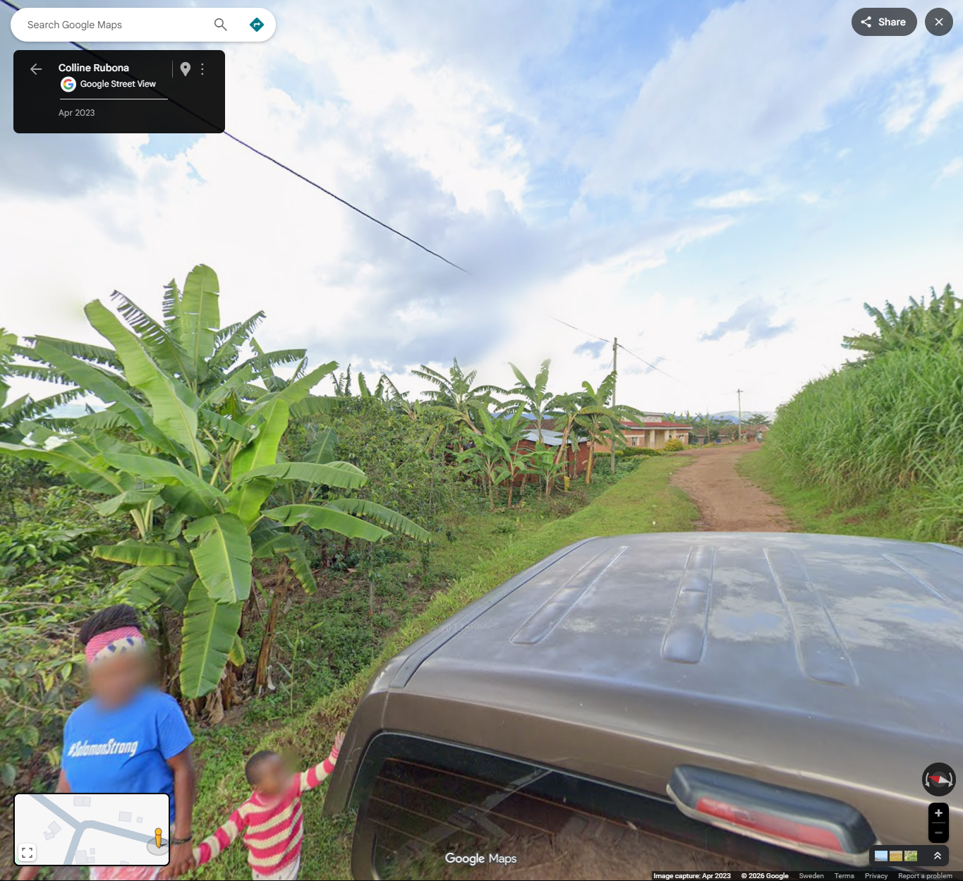 Go to google maps, scroll over to Africa, zoom into Rwanda, and hover the little yellow man over any street. Have fun.