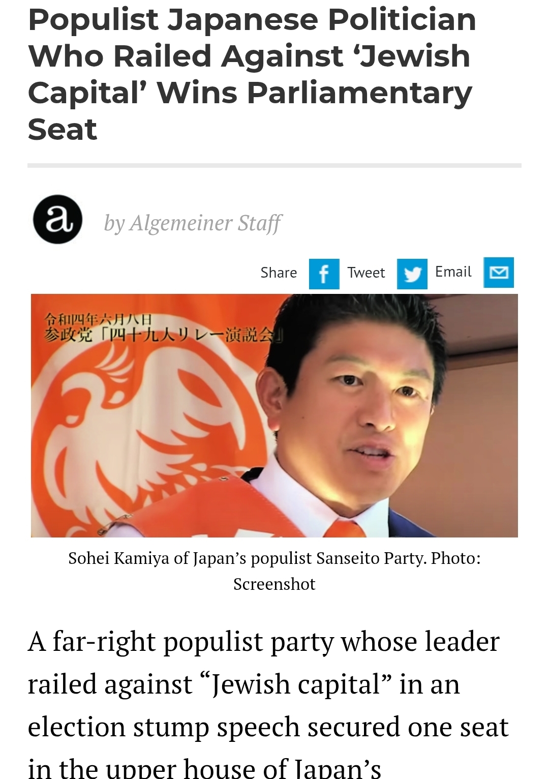 Being endorsed by Sanseito is a big problem in my eyes. I'm fully convinced that they're controlled opposition, so a good far right politician is the one that's opposed by them, not approved.