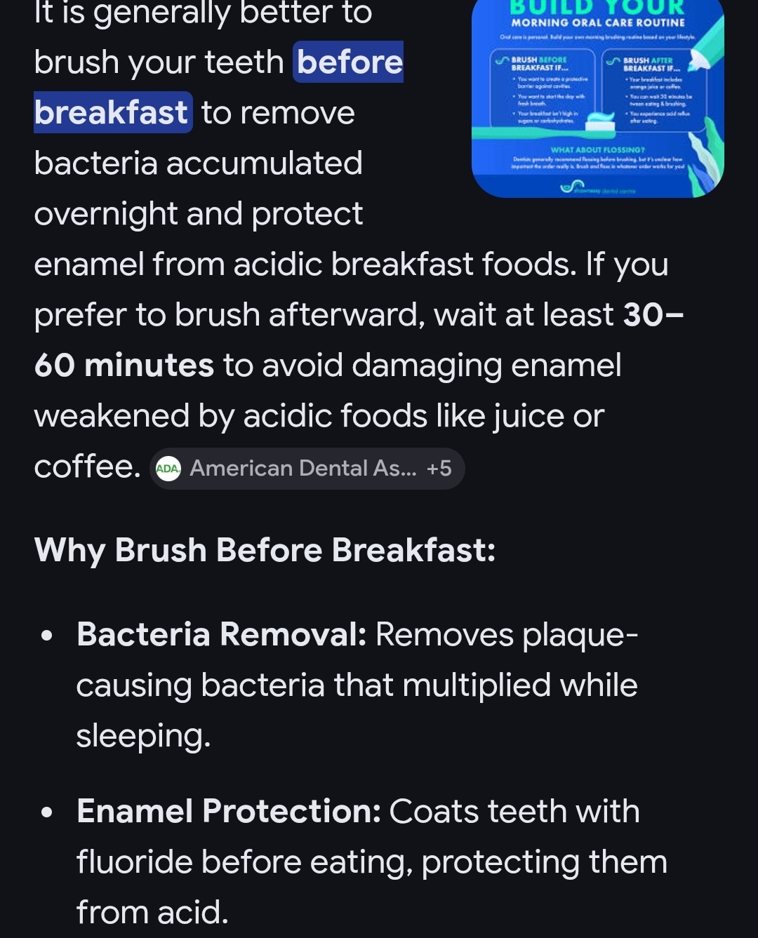 >brushing teeth before having breakfast