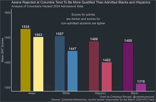 >>532407977>The SAT isn't a g-loaded test.It is, although it has become less g-loaded in attempt to get more blax.>It can be coachedAnd in spite of knowing this, white America refuses to do the reps. If you know how the game is played and simply don't, that doesn't make you based.>And doing well on it doesn't make you educated.It limits your access to the facts, networks, and ability to demonstrate knowledge enjoyed by people at top universities. An MIT grad fundamentally knows more stuff than a Southeastern Doofus State grad; and was probably taught it with more rigor.