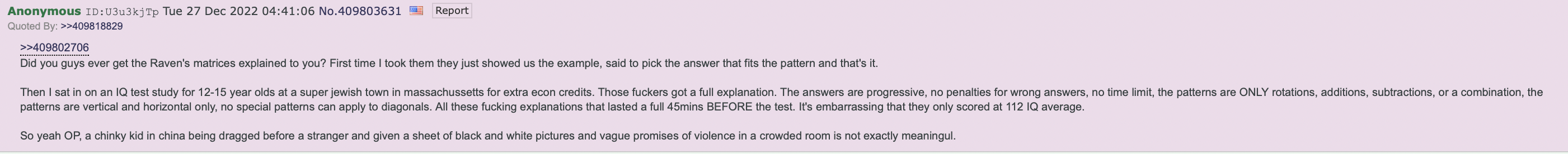 >>532406880I don't deny the truth about the shitty American education system. What other education system besides America's can taken Japanese, Chinese, and Korean PhD level researchers and turn their kids into mediocrities who would not get into the universities their parents studied at.However, the Netherlands isn't that good. You get kwab'd by East Asians on the maths too, and your moat of expertise is not as deep as you think.>>532407046Oh, so g-loaded tests are bullshit now?