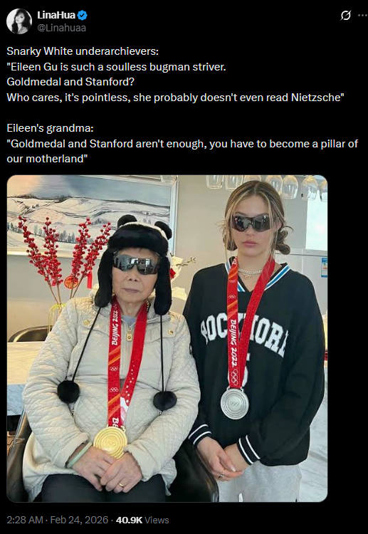 Unfortunately that one guy who made the tweet about how Asians are smarter because the are micromanaged from a very young age to over achieve and shoot for a high career while Whites are allowed to just chill and be kids with most people caring more about high school football than grades wasn't entirely off the mark. It's just a trade off.