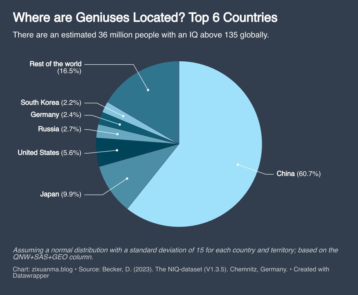 >>532411431Hey, where's India on that pie chart? Surely a nation of more than 1 billion people has lots of geniuses!