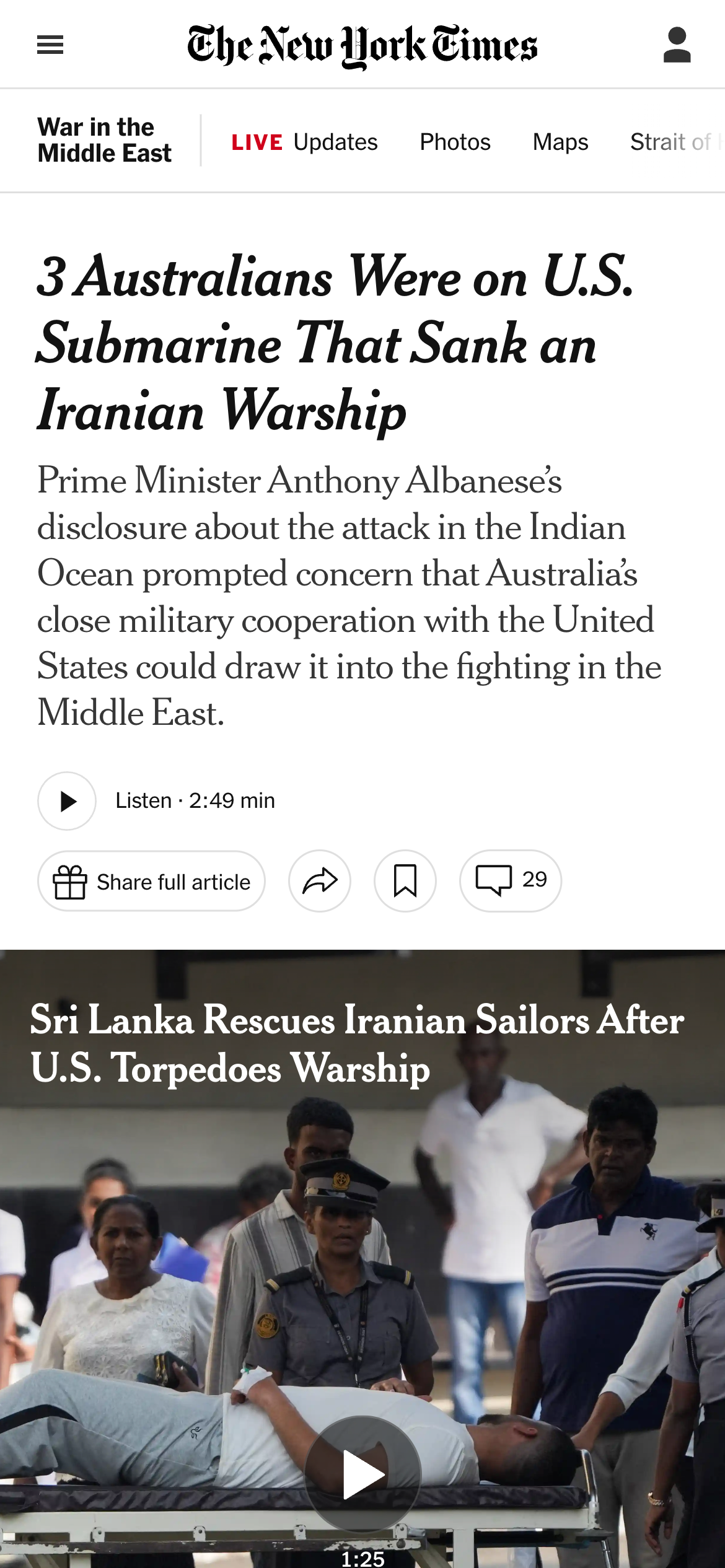 Kuwaiti authorities said early Sunday that drone strikes they attributed to Iran significantly damaged two power and water desalination plants, forcing the shutdown of two electricity-generating units. Kuwait Petroleum Corporation also said its oil complex in the Shuwaikh district in Kuwait City was targeted by Iranian drones early Sunday, sparking a fire, causing damage, and prompting the evacuation of the building. -- NYT