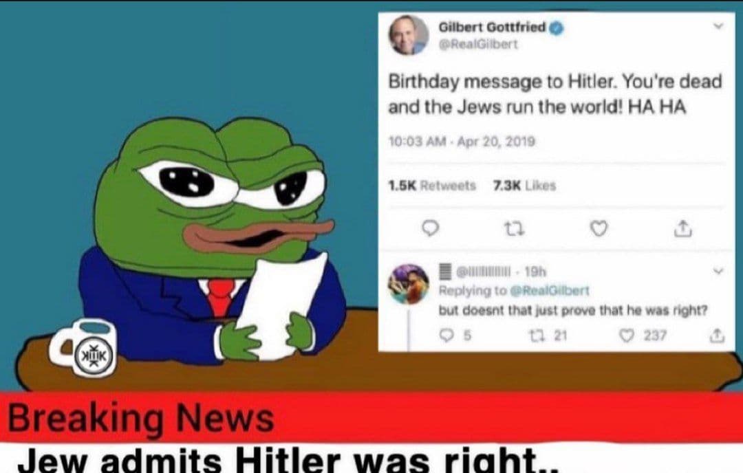 >>532410126>Kikenigger obssesed with fucking a whore or something>Inbreed migger doing the countdown (this one is fun) >Drug addict kikenigger >Kikenigger larping as a nipon >Argentinian kikenigger >Jam boy larping as a aussie (he's here) >Kikenigger who wants a sephardic whore>3 or 4 amerigolems pro MIGA (NOW 7!!!)>Anarchist kikenigger>Khazarian tranny All of them appear in the thread everytime their golems are losing or evangelical wakanda is getting bombed, /pol/ has to learn to recognize them