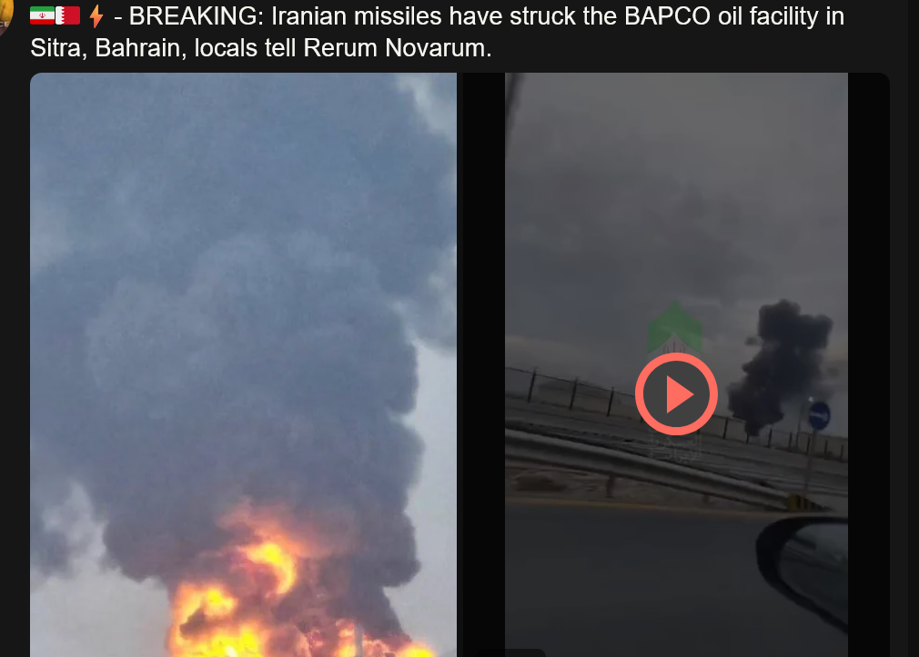random, very recent comment from twatter:> Satellite data confirms multiple fires burning in Kuwait — Burgan oil field, Sabiya power plant, and Sabriya oil field all hit, one of the largest oil fields on earth now burning. https://x.com/WarGuy_/status/2040622309841535094