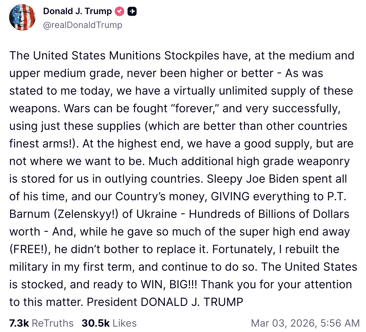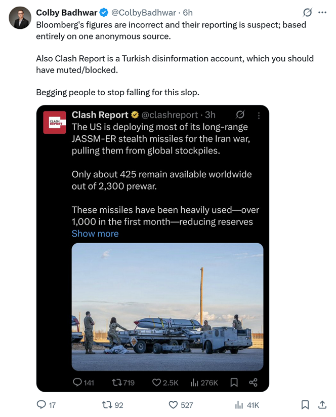 I see a lot of wannabe military larpers talking about America running out of JSSAMs and Patriots and other stuff. as if you are smarter and wiser than the entire military chain of command who's been wargaming all of these scenarios before you played your first combat simdo you have a shred of proof that we are running low on anything? cite a high quality source
