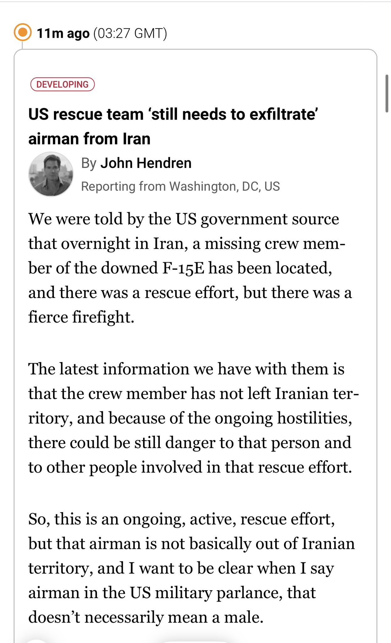 A senior Trump administration official told me that prior to locating the weapons systems officer and the U.S. military rescue operation, the CIA first launched a deception campaign spreading word inside Iran that U.S. forces had already found him and were moving him on the ground for exfiltration out of the country The official said the CIA used its unique capabilities to search for - and find - the weapons systems officer. "This was the ultimate needle in a haystack but in this case it was a brave American soul inside a mountain crevice, invisible but for CIA's capabilities", the official saidAccording to the official the CIA immediately shared the pilot's exact location with the Pentagon, the U.S. military and The White HouseThe President ordered an immediate rescue mission, which the Pentagon executed, with the CIA continuing to provide real time information in support of this mission, the official said