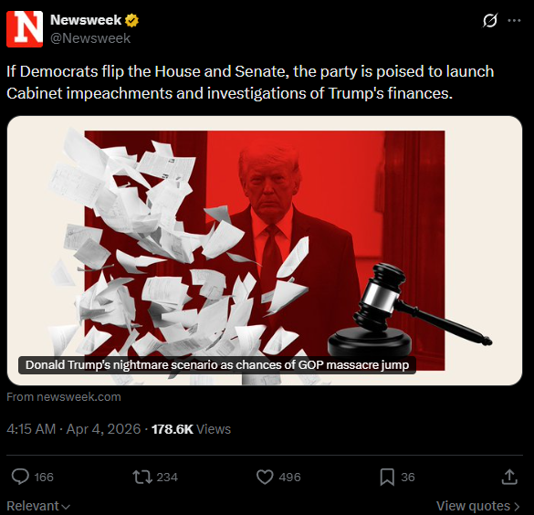 The absolute state of the left: https://www.thedailybeast.com/white-house-forced-to-address-claims-of-donald-trump-health-crisis-at-walter-reed-medical-center/Plebbit isn't taking the news so well either: https://www.reddit.com/r/worldnews/comments/1sctgp9/us_forces_rescue_second_crew_member_from_f15/