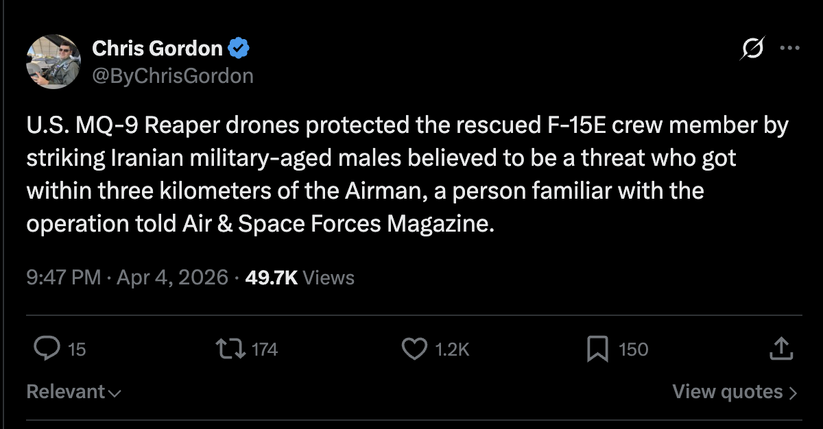 >>532427997>you're laying it on pretty thickHow so? They really did build the airbase in Iran and held it for 24 hours as the CSAR operating base. The logistics and prep work would have been in place a month ago, planes and delta ready to go for the past 5 weeks, as a contingency for when a pilot was eventually shot down. There has never been a CSAR mission this complicated before, not even close.