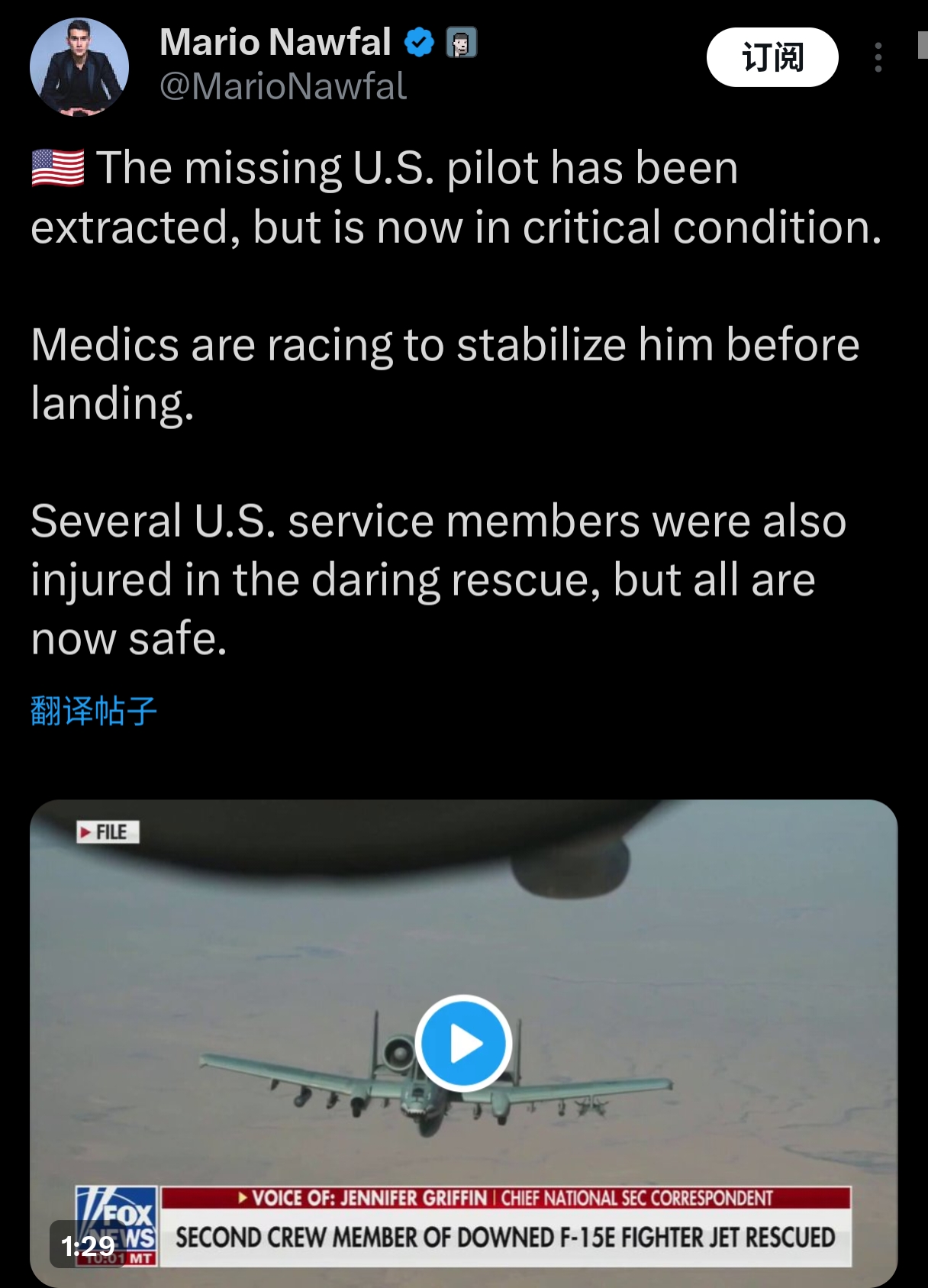 This can't be the original pilot he was completely fine when the Iranians had him. I'm betting they are pretending one of the pilots from the planes downed in the rescue mission is the real pilots.