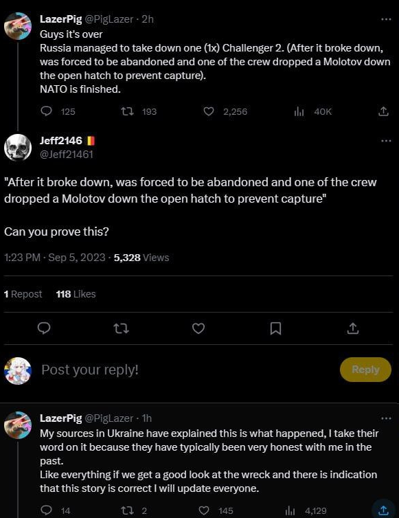 >>532447235Yeah your right it's not easy to get the full picture.It's interesting stuff for sure and would be nice if one day it gets a documentary from any survivors on either side like a ww2 documentary gets.I definitely think it went FUBAR regardless. How bad is yet to be seen or ever known by us mere plebs but I bet it's entertaining either way. Wish this 'control the narrative!' autism all sides are doing would fuck off. I just enjoy war unfiltered, not this clandestine shit where we have no idea what's happening.>>532447569Healthy speculation is fine though? don't get pissy about it.Also please don't call me a Jew, that's very inaccurate and insulting, like if I called you a Jew or a mutt or something. I can keep it civil if you can.