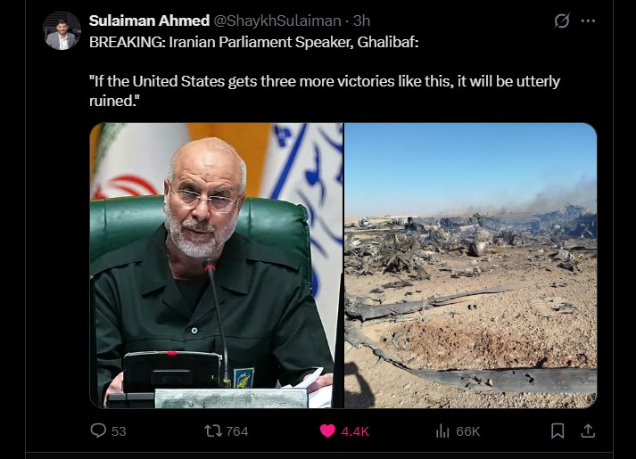 >>532427022> > The Iranian Armed Forces have foiled a US attempt to rescue a downed pilot, destroying several aircraft—including Black Hawk copters and a military transport plane—in a coordinated operation south of Isfahan in central Iran. OH ONONONONO