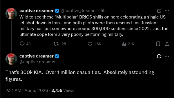 Lmao, spare me the fake crocodile tears. The same "precious lives" you pretend to cry about now are the ones you called "stupid zogbots" last week. You talk, think, and act like a liberal jew, nothing about you is real, and your permission is not necessary for America to continue winning.