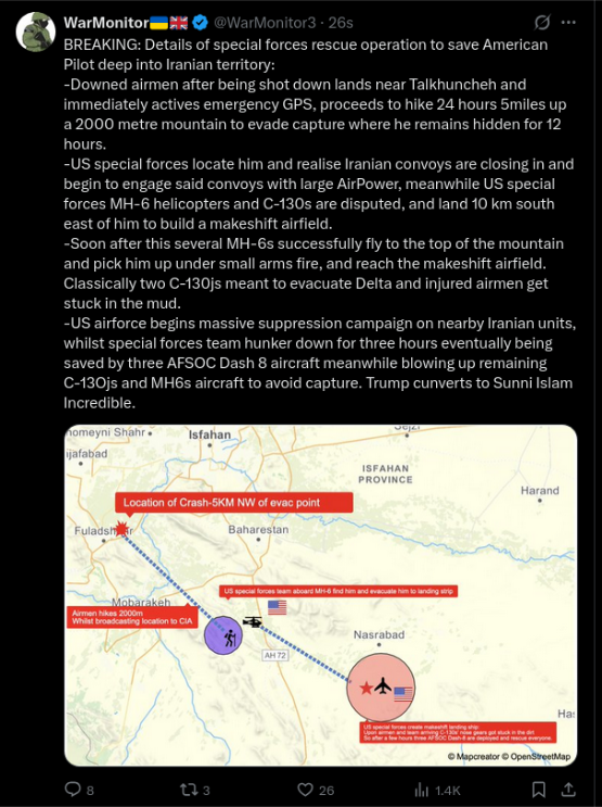 >The ongoing conflict in Iran, some are saying a "Crusade", is exceeding expectations! WE ARE WINNING THIS WAR! If only Crazy Nancy Pelosi and the "Palestinian" Chuck Schumer were somehow in Charge, we'd lose a lot of our Great American Soldiers. HOWEVER, we are bringing our Boys home! MAGA. Thank you for attention to this matter!