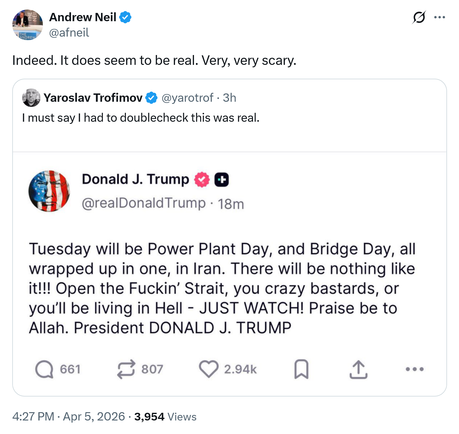 Iran needs to accept his surrender because he's clearly having a mental breakdown. This is genuinely frightening.