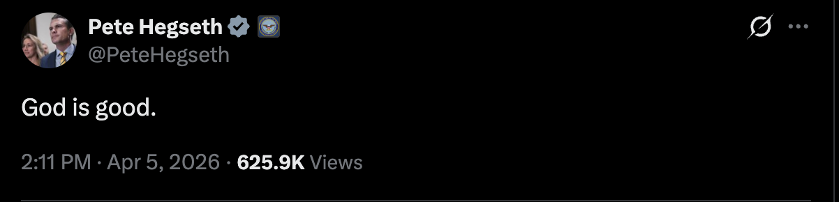 they've all gone schizohttps://x.com/PeteHegseth/status/2040779298823659939