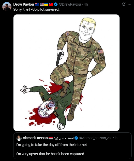 >>532449634>Looks like they ran into an American search and rescue group.KEKhttps://xcancel.com/visegrad24/status/2040607800833749238