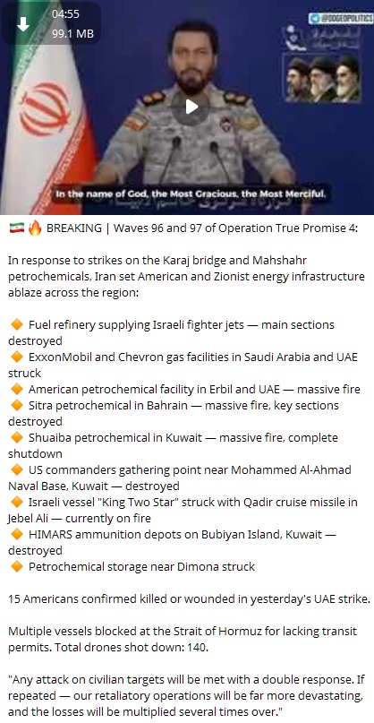 >“The IDF does not have the capability to destroy the missile cities of the Revolutionary Guards.” — Israeli media quoting an Air Force source