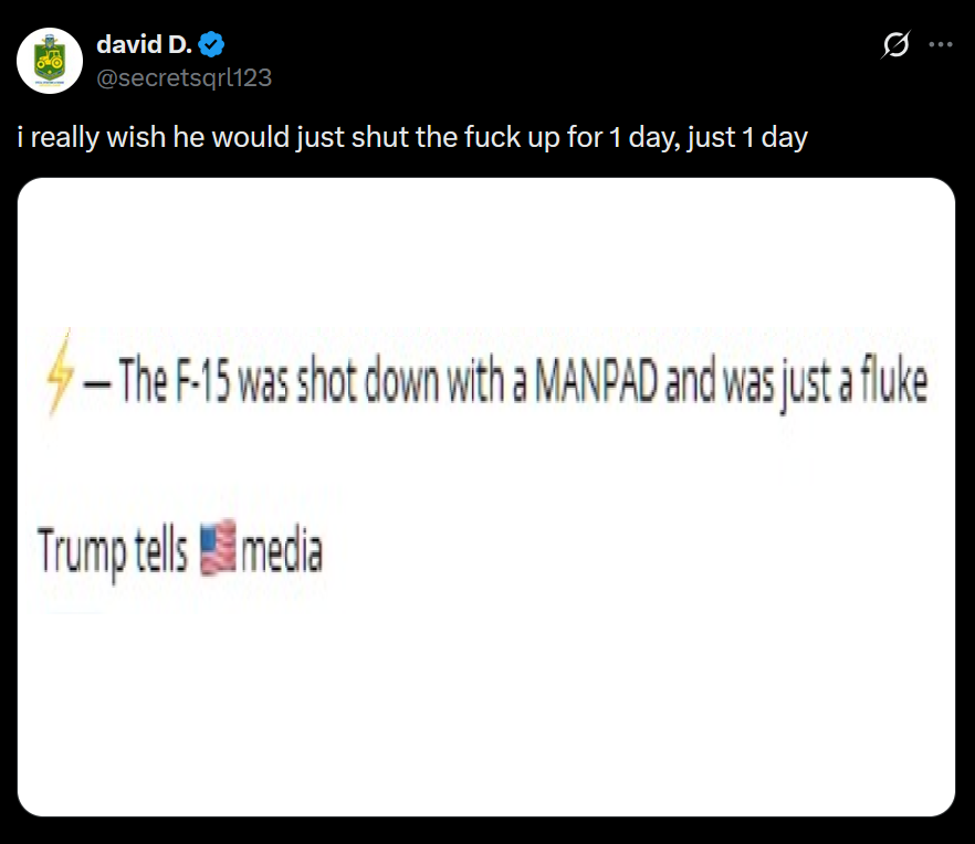 So american commandos got shot down on the way into Iran, and they're coping pretending they "blew up their own plane" and "flew out with another"?How retarded are these zogbots and their cheering squad?