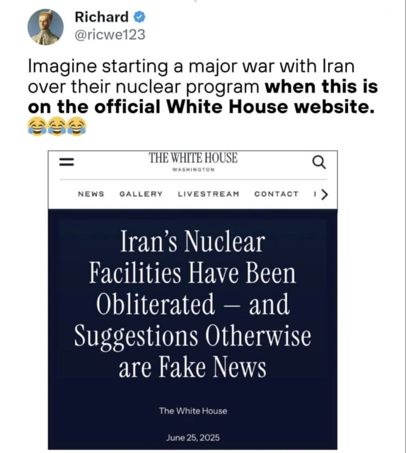 >>532477426>They refused to halt their enrichment program.Because they witnessed Syria getting bombed daily by Israel. They witnessed what happened to Saddam who peacefully gave up nukes, and to Gaddafif who decided against developing nukes. They all died. >They refused IAEA inspection of all their facilities.Israel was using the inspections process to spy on them and kill their scientists and officials. >They refused to stop advancing their ballistic programWhich is kind of saving their life right now. >They killed and terrorised their own population numerously since being a Republic and since they've been a designated terrorist state.The people designating them as a "terrorist state" are the people who engineered a genocide in Gaza. Iran has not attacked another country in 600 years. The US attacks another country every other year.>They have sent assassin's and terrorists all over the globe.They did project some power in the Middle East using proxies. But the US did the same when it overthrew LIbya and Syria, invaded Afghanistan and Iraq....etc. The US killed over a million people in a decades-long terror campaign.Imagine if you just witnessed Russia invade Poland, overthrow Spain and turn it into slave markets, bomb France into the stone age, invade Germany and kill a million people there. How would you feel about that? >They directly arm terrorism causing global instability.They mostly stayed in their own corner of the world without bothering anybody until they were randomly attacked. >Nothing unprovoked about it.The US unilaterally tore up the deal, attacked them, killed their diplomats, assassinated their leader. It's pretty unambiguous. Iran has been trying to de-escalate the situation the whole time.>An occurrence that was inevitable.With the jewish lobby in the US, everyone knew it was inevitable even 30 years ago, yes.
